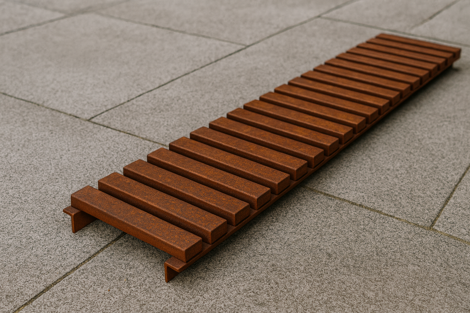 Unlike ordinary grates, the 1×2 rectangular hollow sections (RHS) are oriented across the drain to maximize load-bearing capacity. The perimeter uses ¼" thick angle iron to provide solid edge support and long service life.
